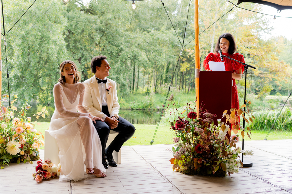 'In the soft glow of late summer, this celebration unfolded with effortless grace. Surrounded by lush greenery, they exchanged vows in a ceremony filled with warmth and connection. A tribute to love and to the fleeting beauty of summer’s final light.'